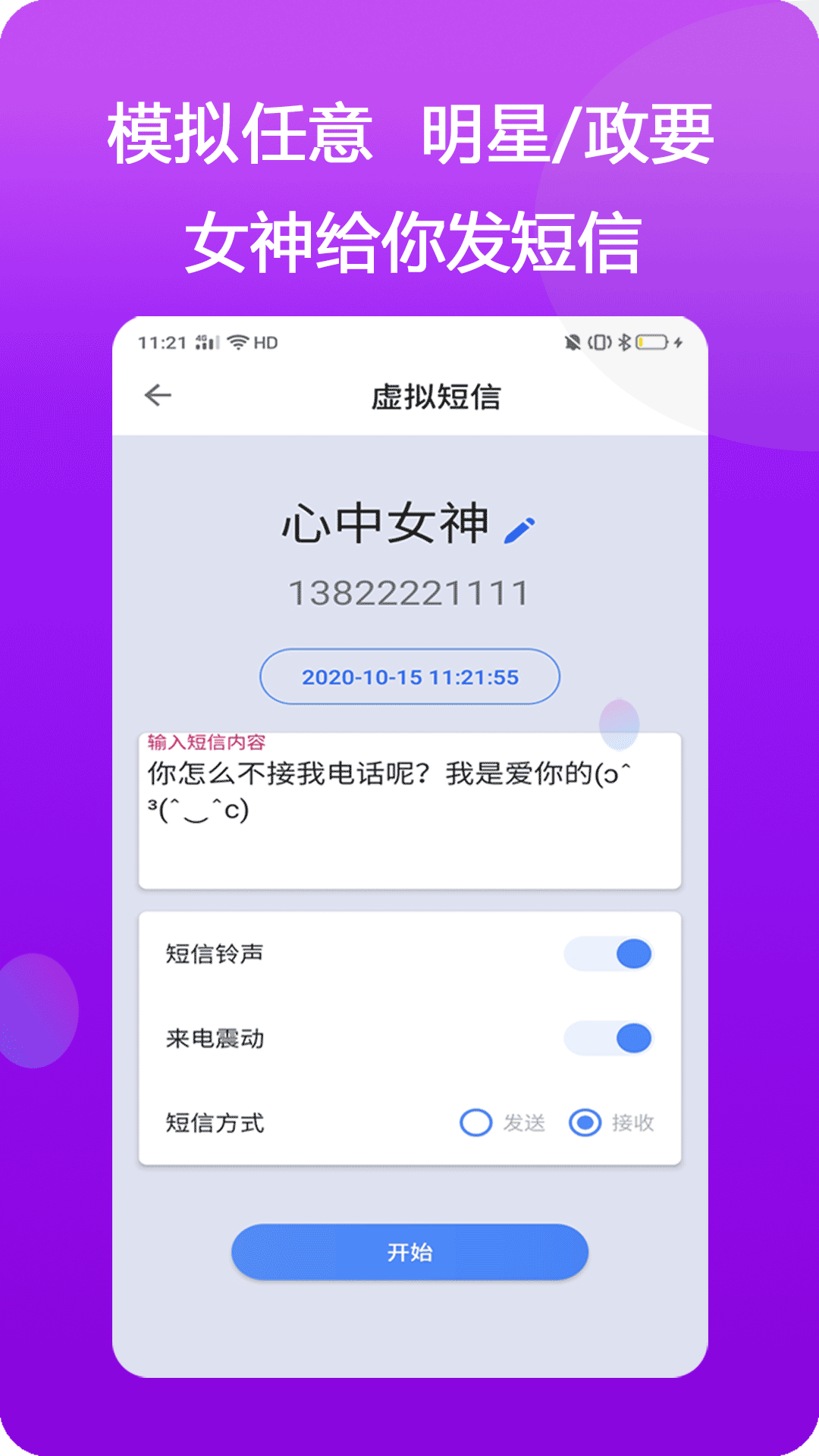 虛擬任意人、時(shí)間、歸屬地、號(hào)碼、通話聲音打來的電話;還能虛擬來短信發(fā)短信等短信聊天哦